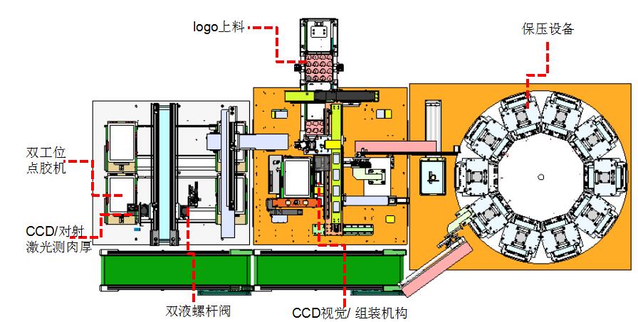 產(chǎn)品上料、點膠、組裝、保壓、產(chǎn)品下料,僅需要1名操作人員即可完成。大大節(jié)約人力.